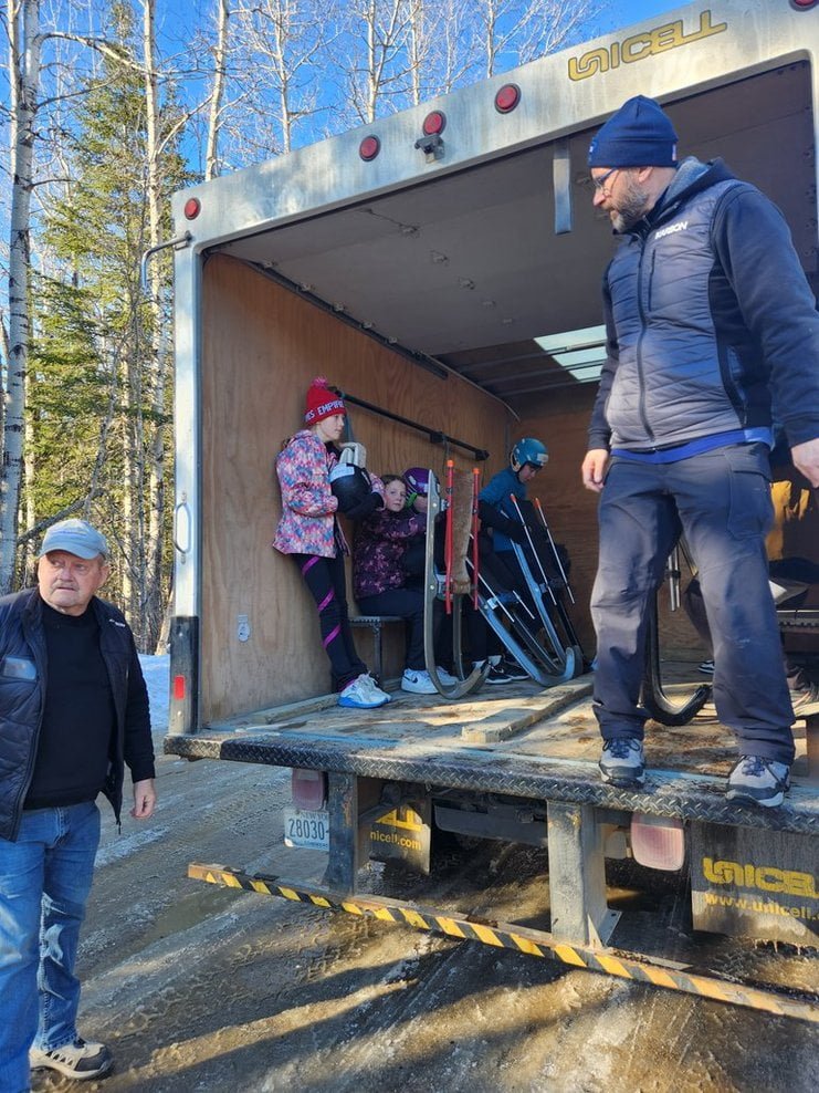 When heading up to the track, all the kids piled into a few box trucks with their sleds. Steph said that it was a fun bumpy ride to the top with the back door open.